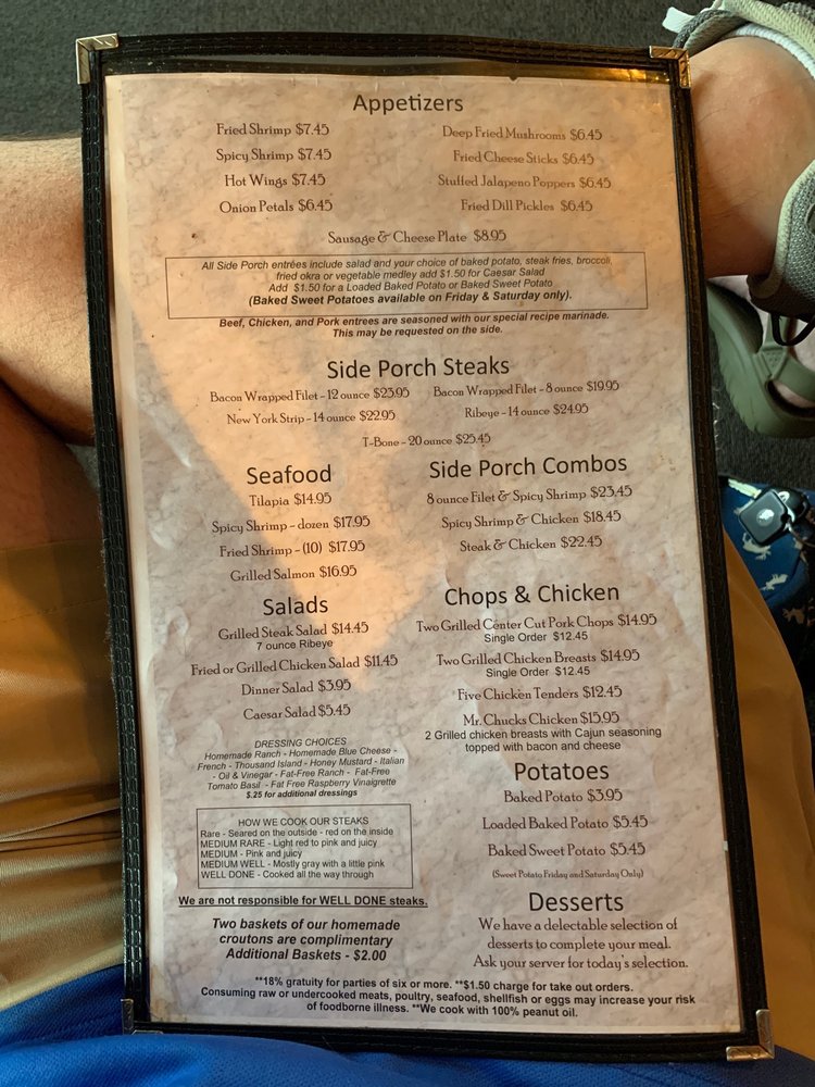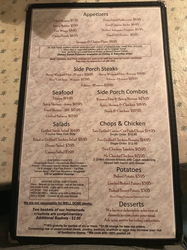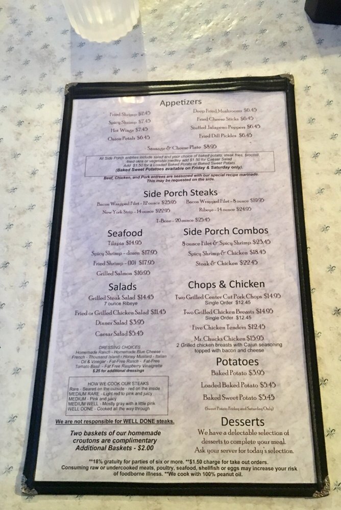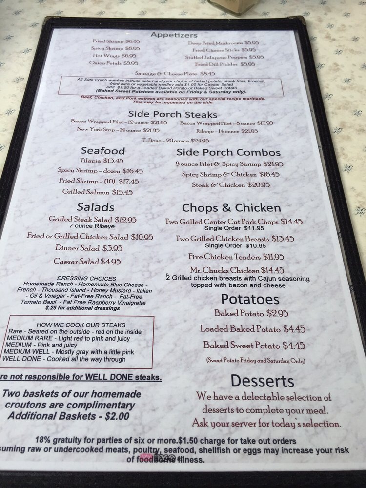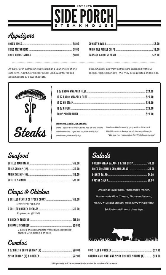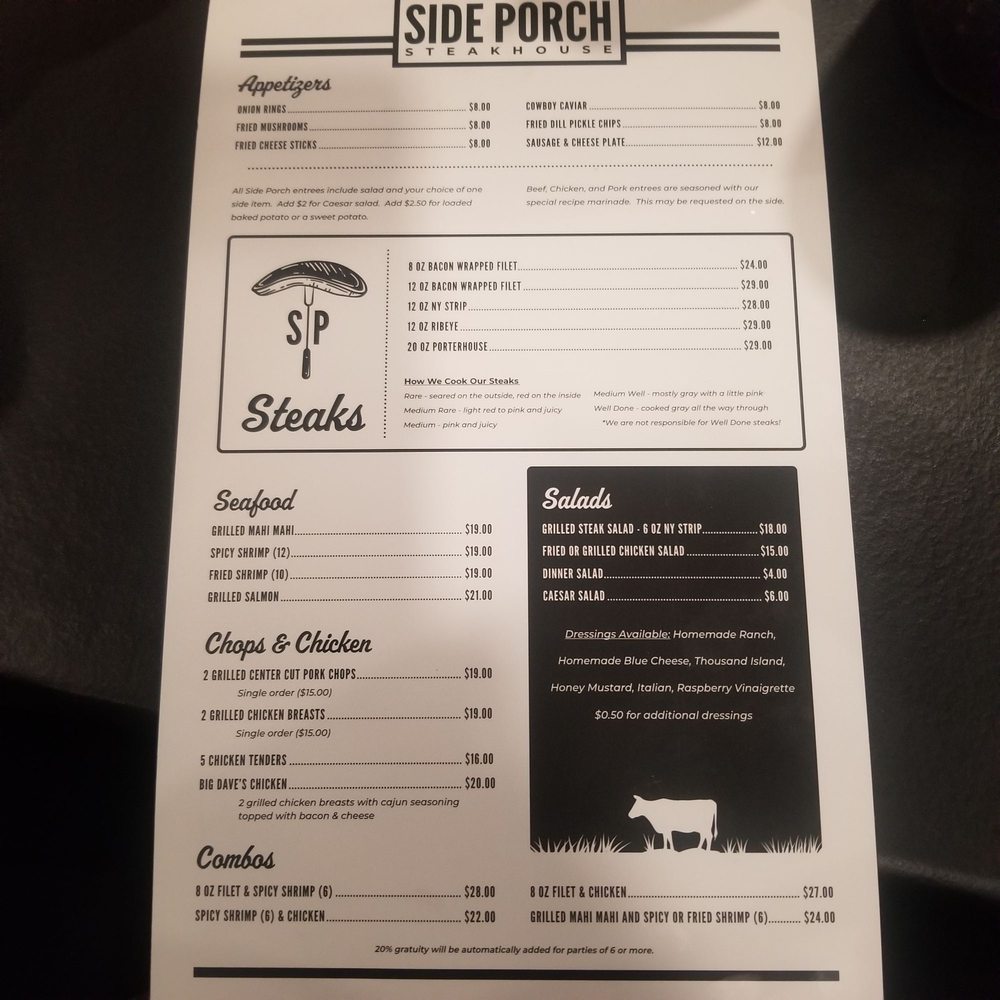 Side Porch Steak House Menu (Update 2025)